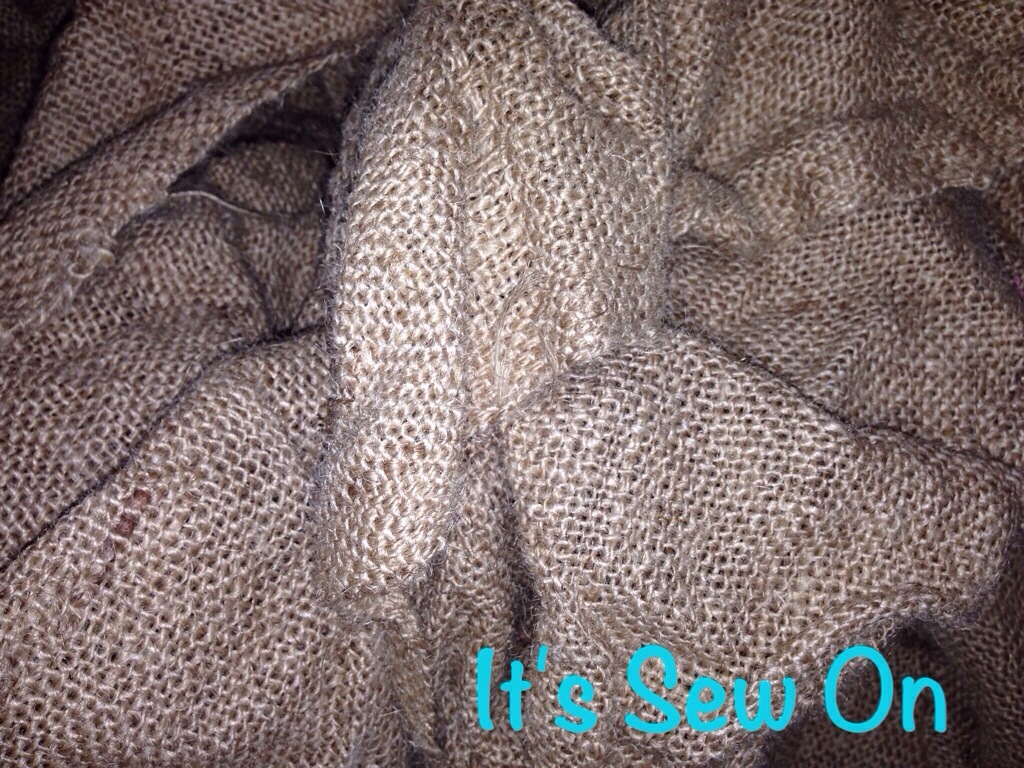 Then pull it. I pull some then gather and scrunch the burlap to the other end and make a small v like clip to cut the other end free.