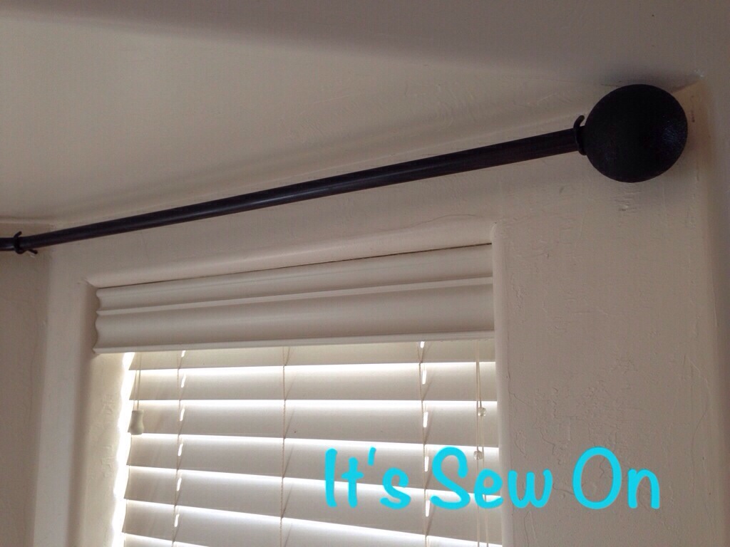 I found some fancy curtain rod ends….Christmas balls that I cut the hanging thing off of!! Lol told you it was cheap!!